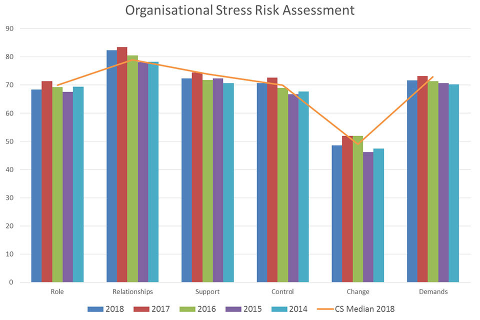 Organisational work related stress has been measured over time using our own Organisational Stress Risk Assessment calculation.