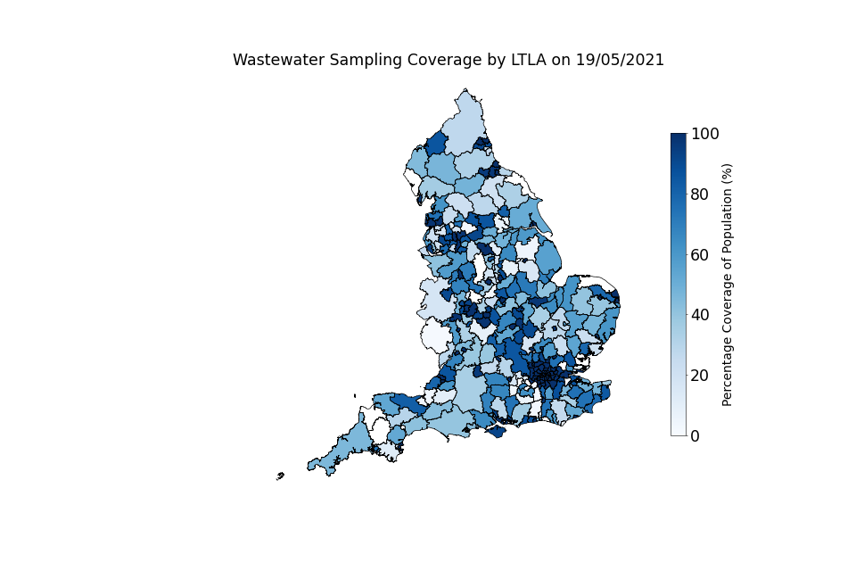 The data presented provide a snapshot of wastewater testing coverage on 19 May 2021. The data has a degree of uncertainty and associated caveats: