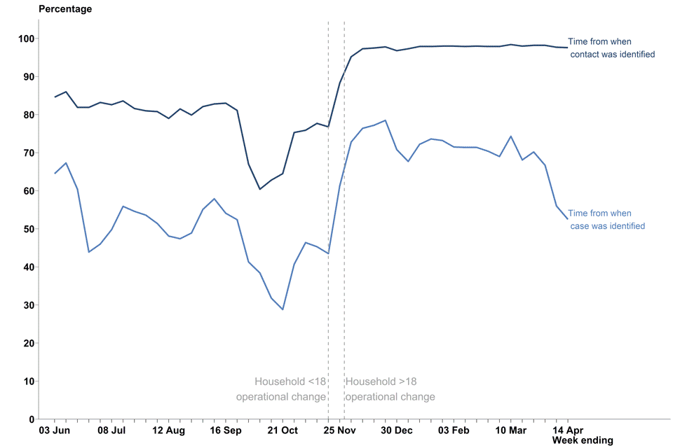 NHS Test and Trace is for England only, therefore the figures in this section are given for England. Weekly figures for UK testing are available to download from the weekly collection page and are also available daily on the coronavirus in the UK dashboard. Information on contact tracing in Scotland, Wales and Northern Ireland can be found directly from Public Health Scotland, the Welsh government and the Northern Ireland Public Health Agency.