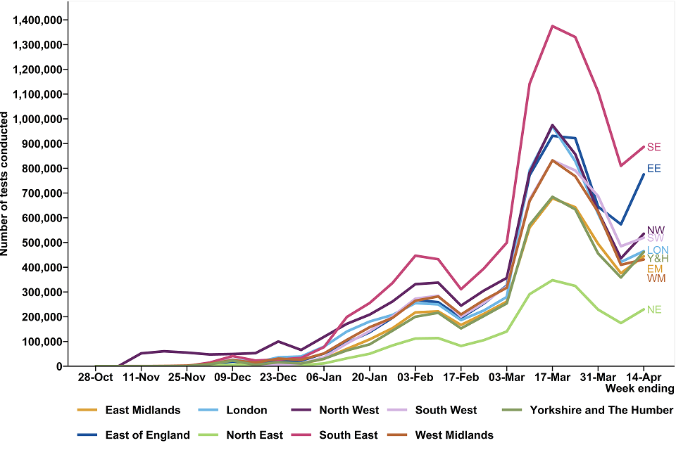 Weekly statistics for rapid asymptomatic testing in England: 8 April to 14 April 2021