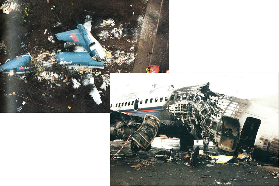 AAIB made 31 Safety Recommendations following the accident at Kegworth in 1989 (left). These led to improvements in pilot training, crew communication crashworthiness and cabin safety. 31 Safety Recommendations were made following the accident at Manchester in 1985 (right). These led to far-reaching changes to aircraft cabin design including fire retardant materials and access to emergency exits.