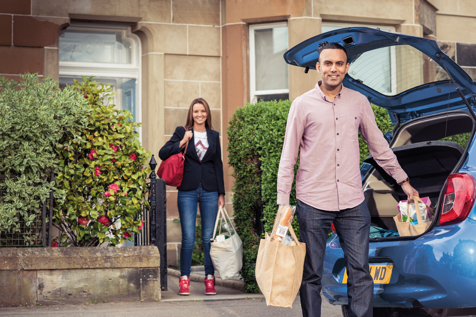 Couple unloading groceries