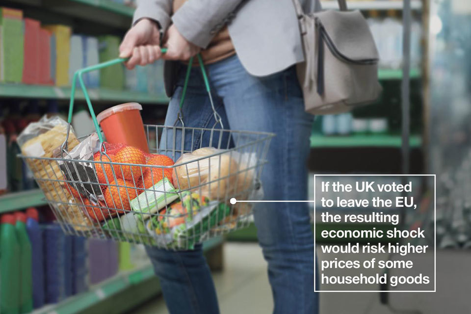 If the UK voted to leave the EU, the resulting economic shock would risk higher prices of some household goods [footnote 23]