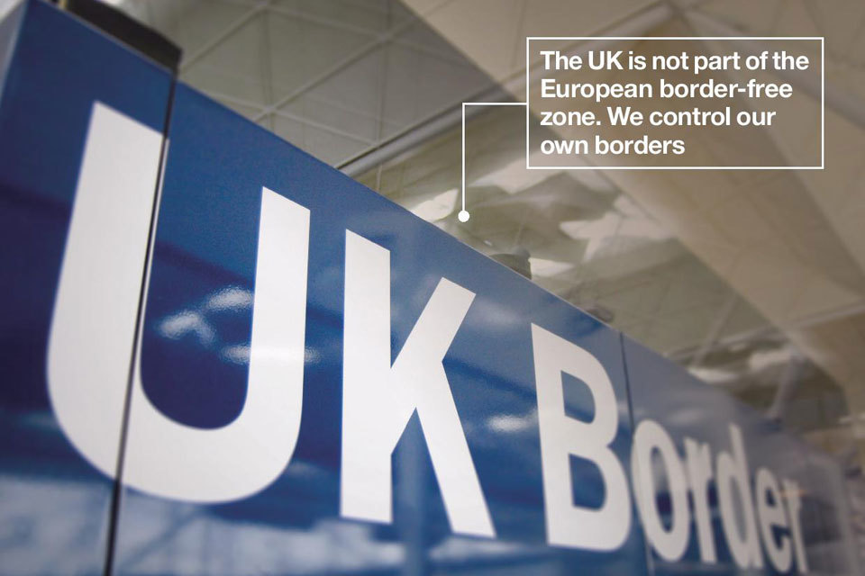 The UK is not part of the EU’s border-free zone – we control our own borders which gives us the right to check everyone, including EU nationals, arriving from continental Europe.[footnote 32]