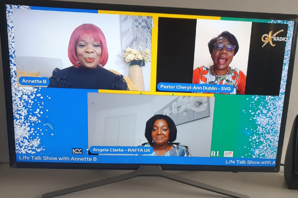 An image of an appearance on Annette B’s (TV Presenter) chat show at RAFFA.