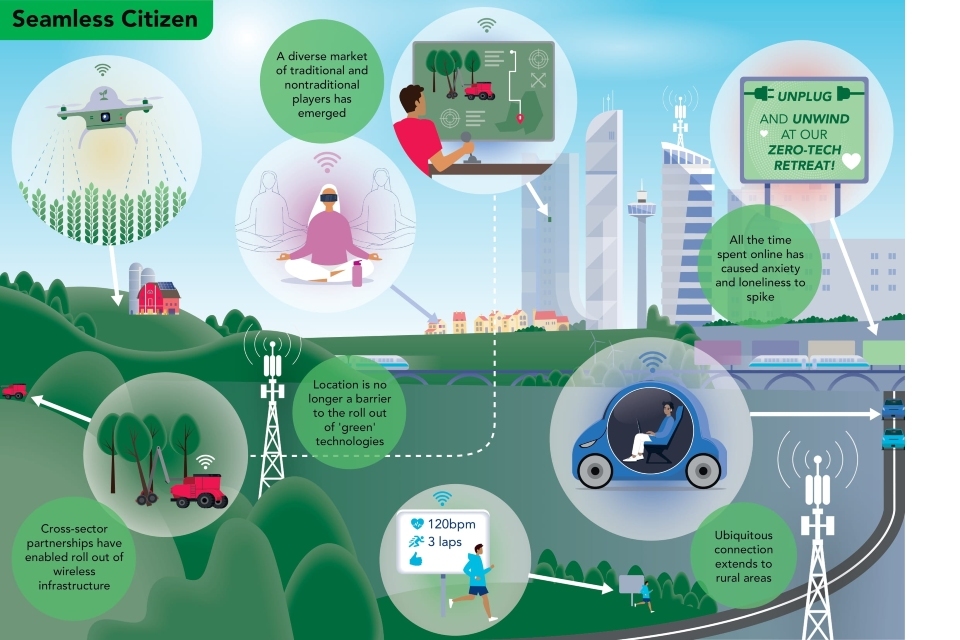 - Scenario D: Seamless Citizen - Citizens and industry embrace full digitisation and demand facilitates the rollout of advanced network infrastructure throughout the UK. This new quality and ubiquity of connectivity unlocks opportunities for prosperity but is demanding of people’s data, energy and mental health.