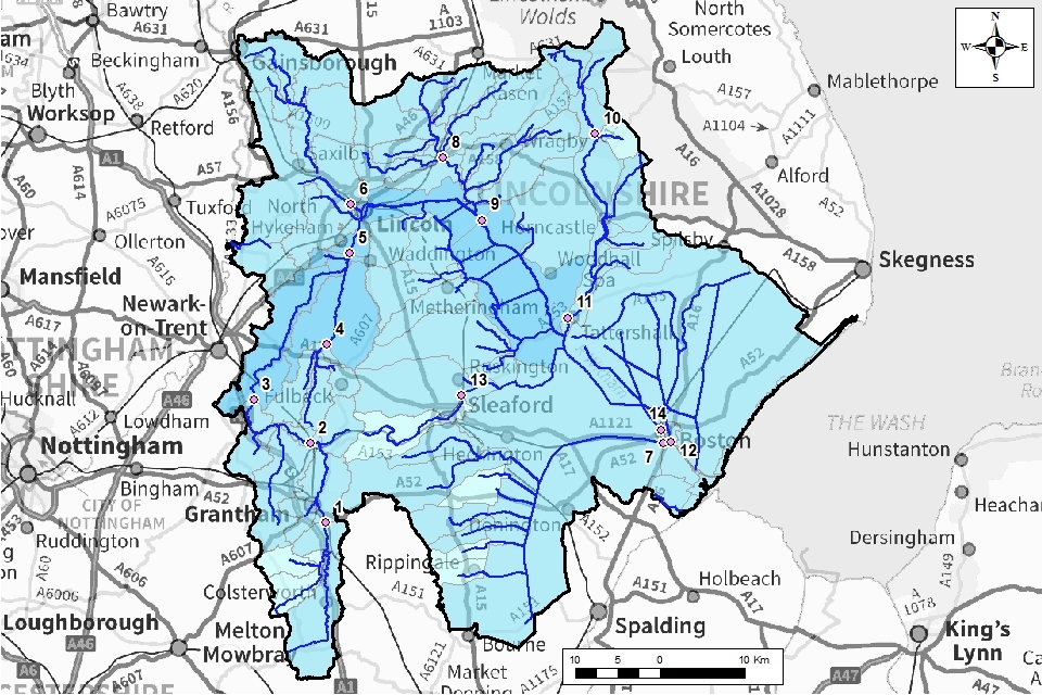 Other significant rivers in the catchment (all tributaries of the Witham) are: