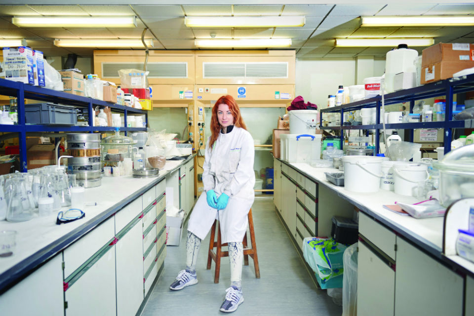 Elena Dieckmann is the co-found AEROPOWDER, a start-up turning waste feathers from the poultry industry into innovative materials. She is pictured in her lab at Imperial College London.