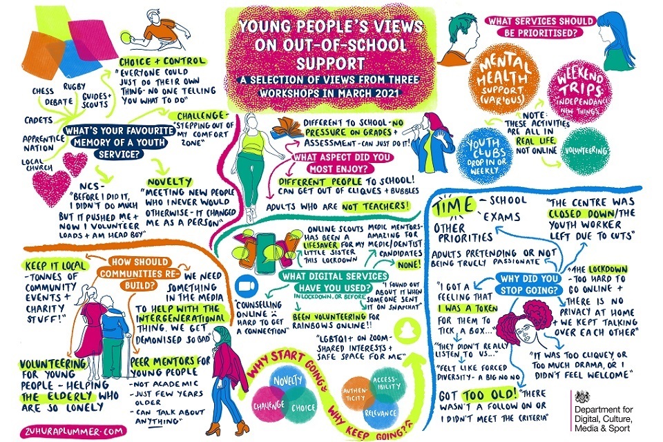 In 2020, government announced a Department for Digital, Culture, Media and Sport-led review of youth services. The aim was to develop a clear direction for our out-of-school youth agenda, and to ensure that our spending and programmes meet the needs of young people as well as our ambitions on ‘levelling up’.