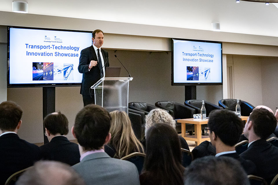 Jesse Norman speaking at the Transport Technology Innovation Showcase.