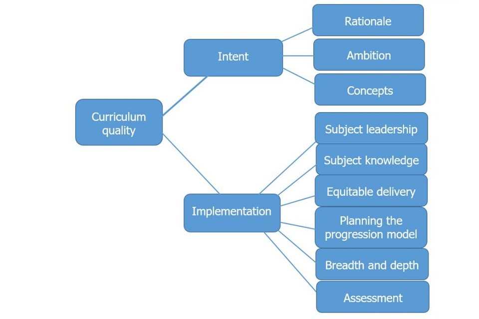 Indicators 1 to 2 are indicators framed around curriculum intent; 3 to 7 are implementation indicators and 8 to 9 relate to impact.
