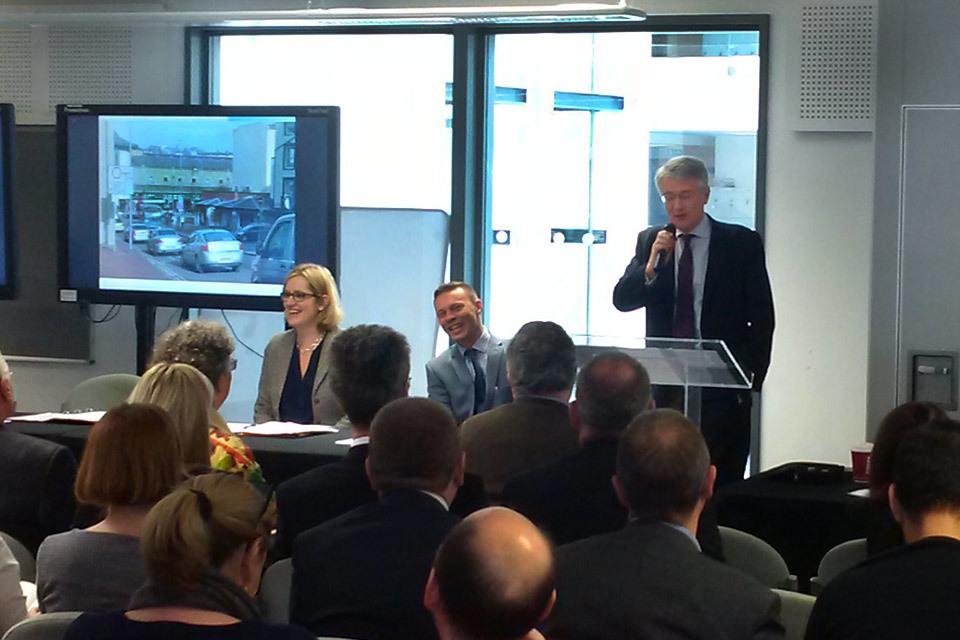 Roads Minister Andrew Jones delivers a speech on transport investment in Hastings.