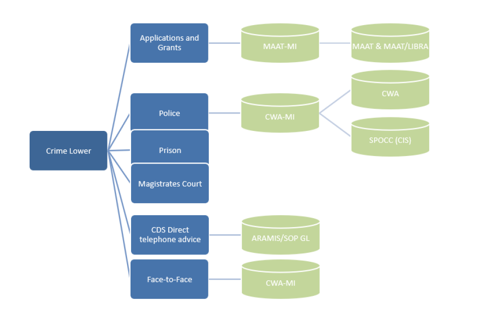 Crime Lower includes information from the police station and pre-charge stage, the early court system (including magistrates’ courts) and prison assistance. These are the relatively higher volume, lower cost units of criminal legal aid work. Figures for Crime Lower are presented in tables 2.1 to 3.1 of the quarterly legal aid statistical release.
