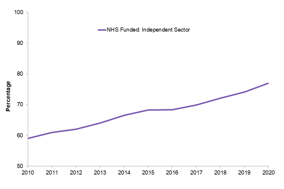 99% of abortions in England & Wales were funded by the NHS in 2020, with 77% of abortions taking place in the independent sector.
