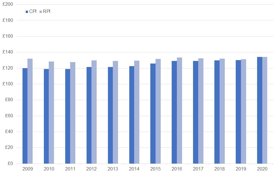 For reasons of comparison and maintaining time series before CPI was created, where applicable, both the CPI and RPI are used to convert the values of each benefit to April 2020 prices in the enclosed tables.