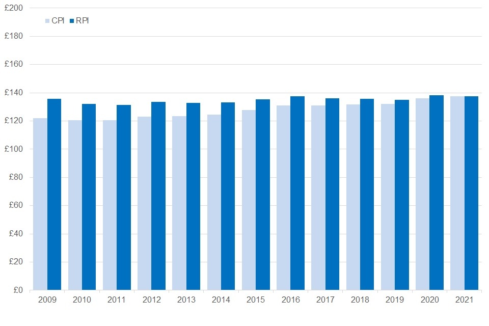 For reasons of comparison and maintaining time series before CPI was created, where applicable, both the CPI and RPI are used to convert the values of each benefit to April 2021 prices in the enclosed tables.