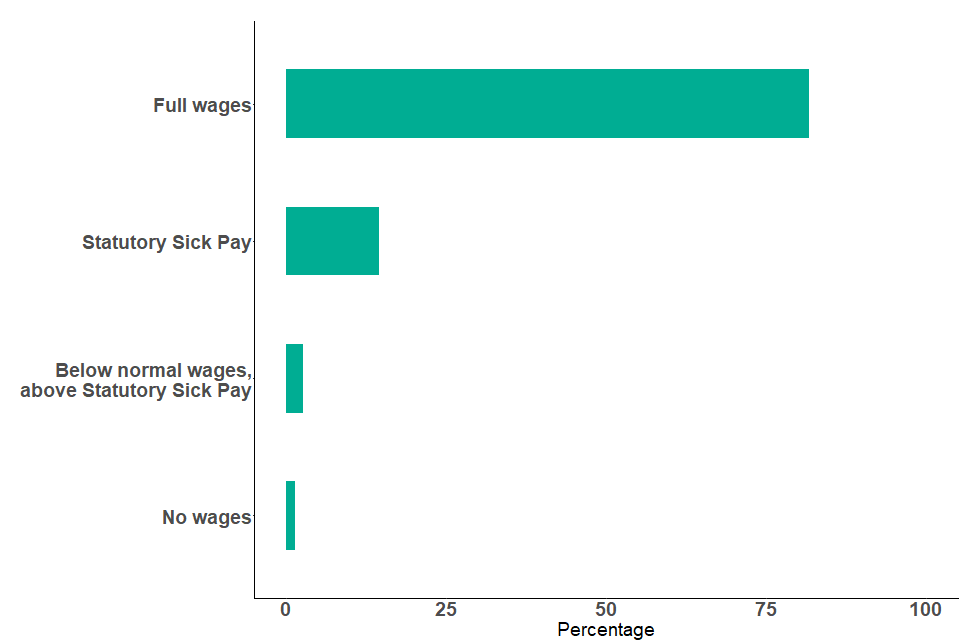 - 81.6% of care homes who had staff required to self-isolate paid those staff their full wages while self-isolating. This proportion has remained consistent since mid-December 2020