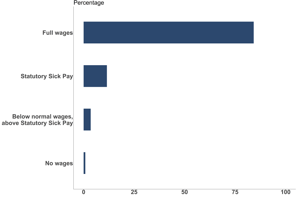 84.2% of care homes who had staff required to self-isolate paid those staff their full wages while self-isolating. This proportion has remained consistent since mid-December