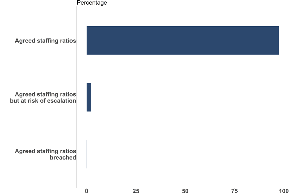 Agreed staffing ratios: the agreed number of residents for any given member of staff. This is determined by individual providers to ensure there is safe levels of staffing for care to be delivered. This can be subject to inspection by the CQC. See Regulation of staffing for more information.