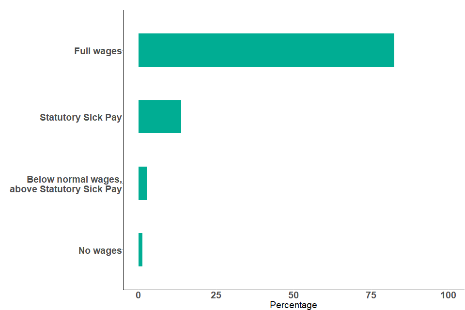 - 82.4% of care homes who had staff required to self-isolate paid those staff their full wages while self-isolating. This proportion has remained consistent since mid-December 2020