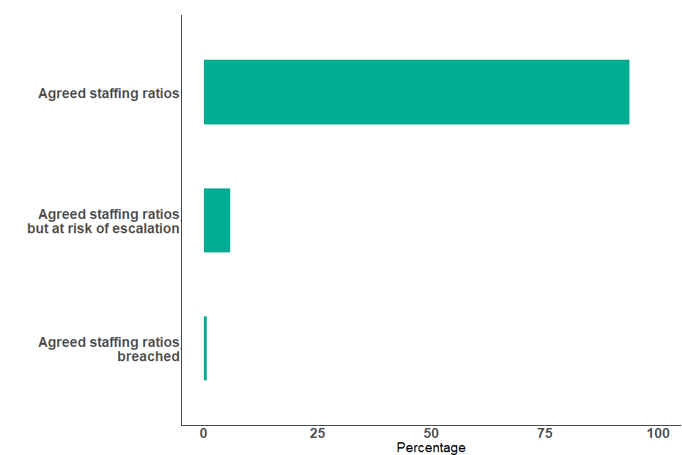 Agreed staffing ratios: the agreed number of residents for any given member of staff. This is determined by individual providers to ensure there is safe levels of staffing for care to be delivered. This can be subject to inspection by the CQC. See Regulation of staffing for more information.