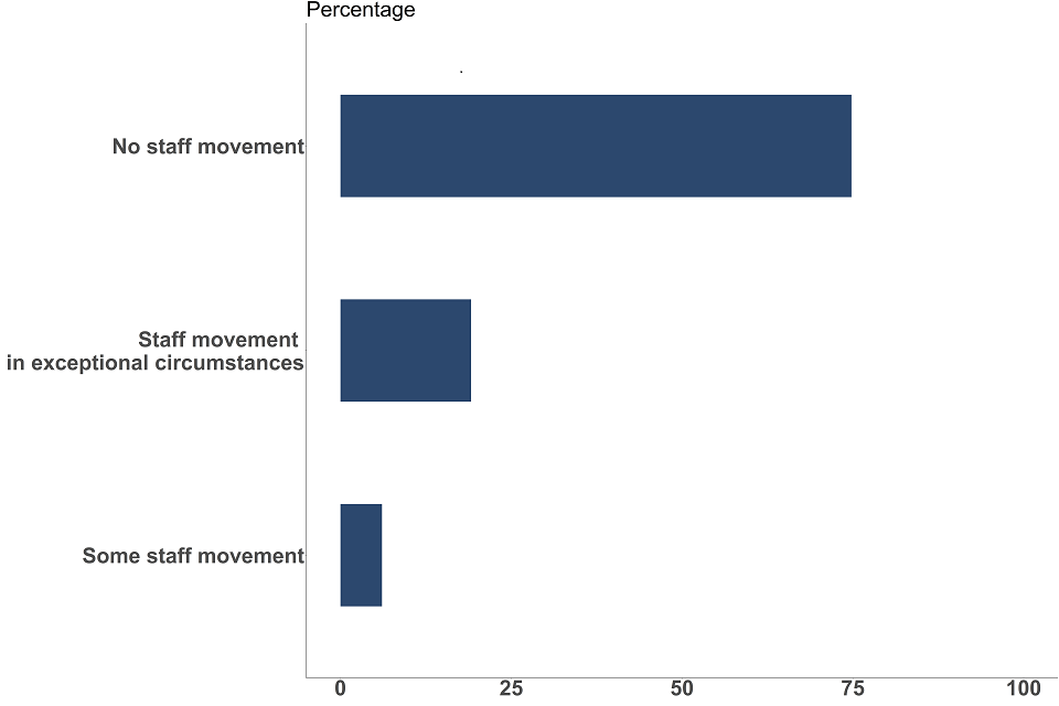 74.8% of care homes had no staff members working in another health or social care setting, this proportion has gradually declined from 78.2% at the end of April 2021