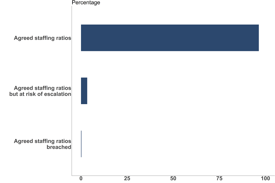 Agreed staffing ratios: the agreed number of residents for any given member of staff. This is determined by individual providers to ensure there is safe levels of staffing for care to be delivered. This can be subject to inspection by the CQC. See Regulation of staffing for more information.