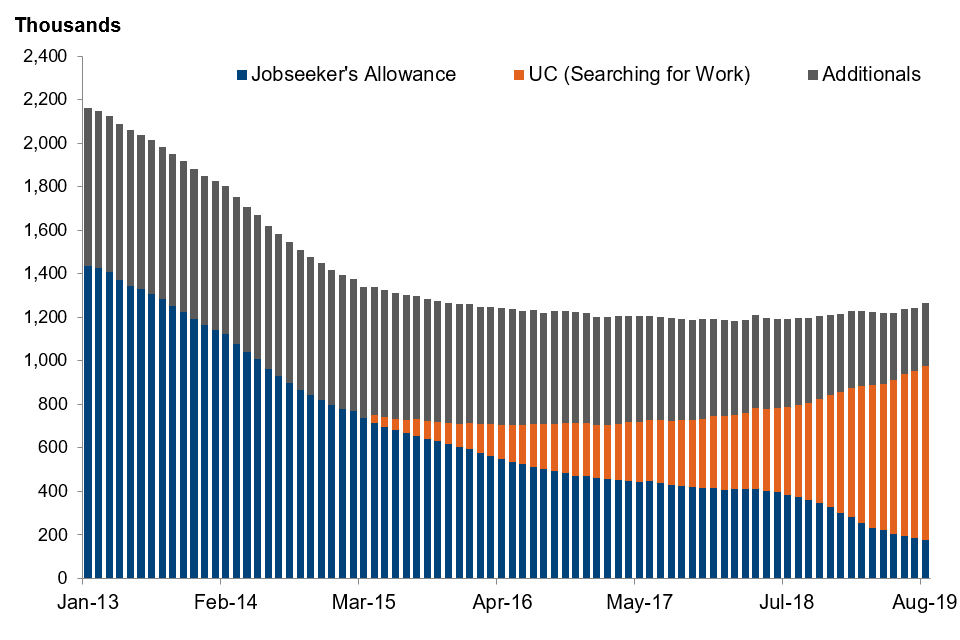 Of the 1.27 million people claiming unemployment benefits in August 2019, 288,000 (23%) were ‘additionals’.