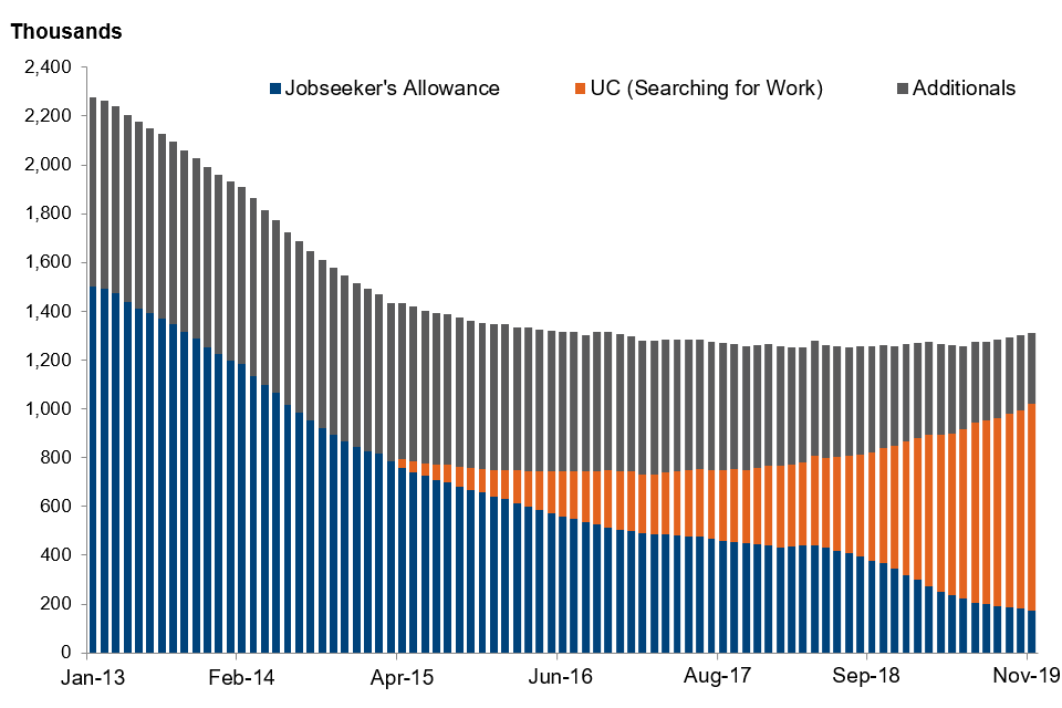 Of the 1.31 million people claiming unemployment benefits in November 2019, 290,000 (22%) were ‘additionals’.