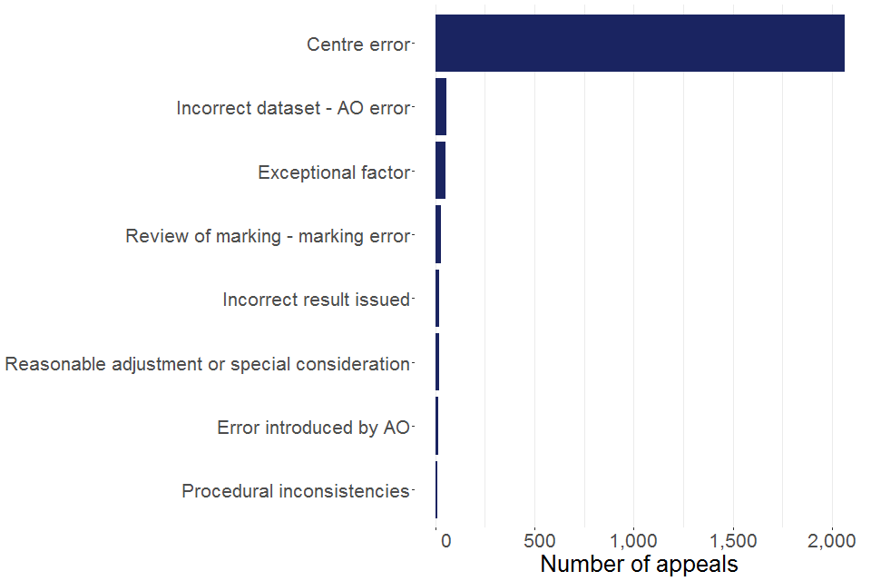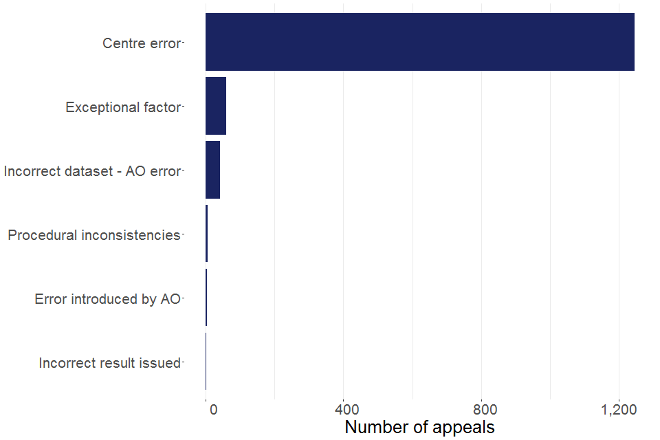 Centre error was the most common ground for GCE appeal in 2019/20 with 1,245 appeals received.