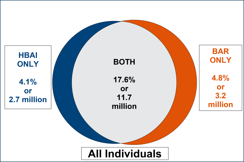 | <=5% below | 2% (1.3 million) | 3% (0.5 million) | 2% (0.7 million) | 2% (0.2 million) |