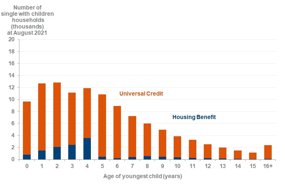 Just over half of all single-parent capped households have a youngest child under the age of 5 at August 2021