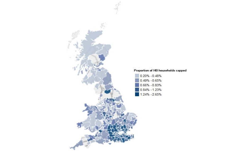 the proportion of HB and UC claimants that have their benefit capped at the Local Authority (LA) level
