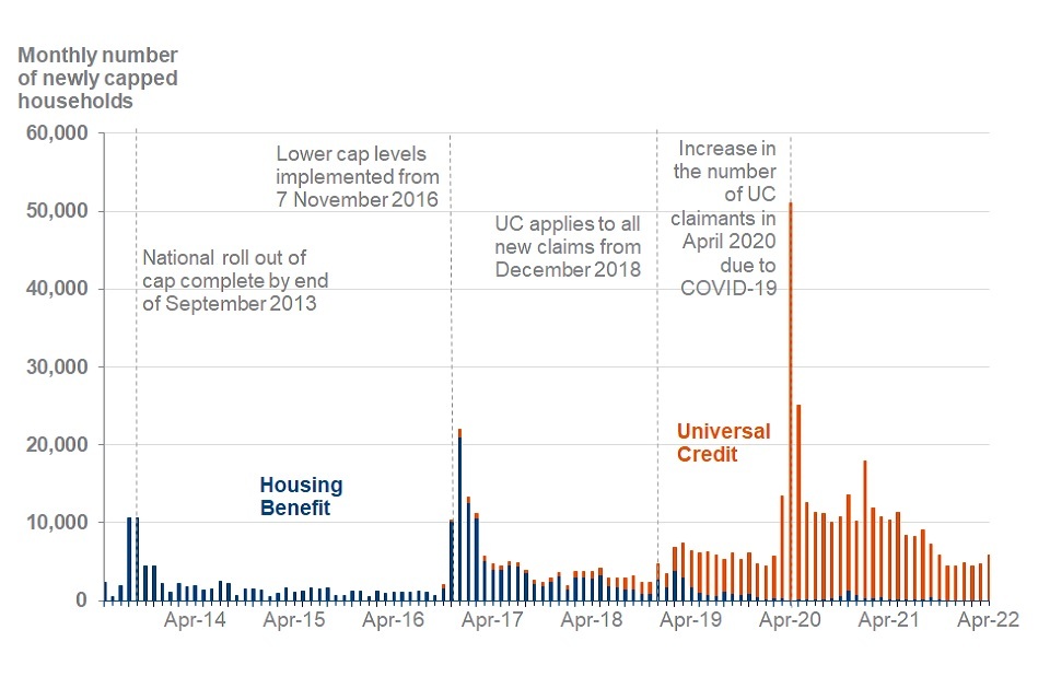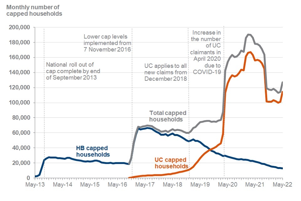 Source: Benefit Cap HB point in time caseload and UC point in time caseload statistics to May 2022, Stat Xplore