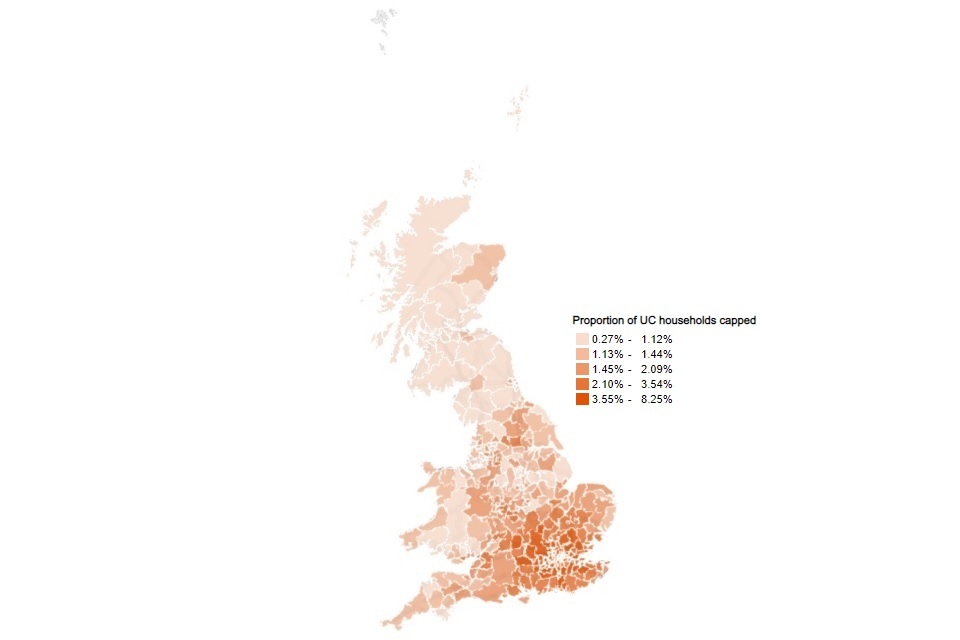the proportion of HB and UC claimants that have their benefit capped at the Local Authority (LA) level