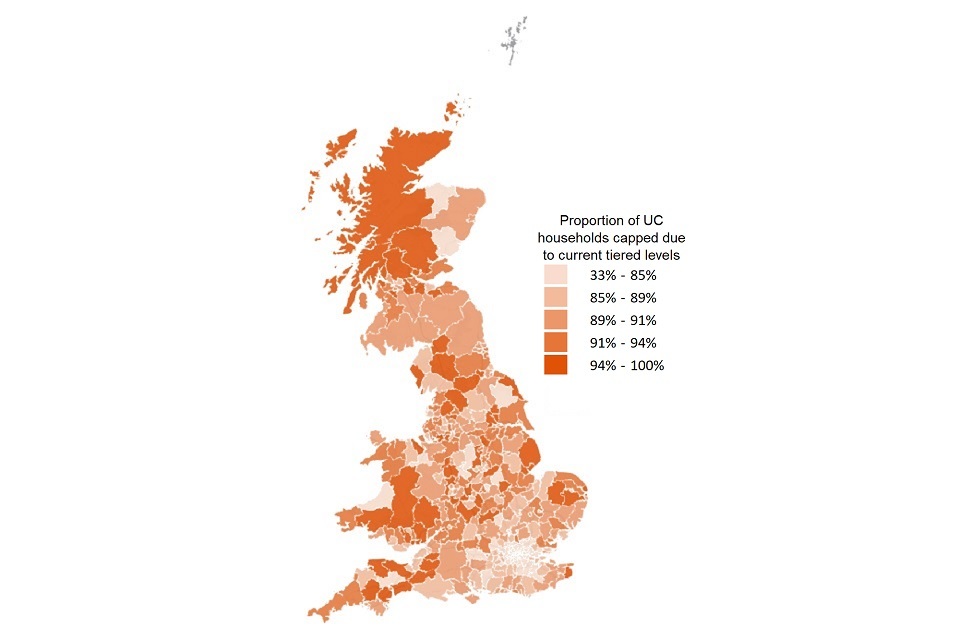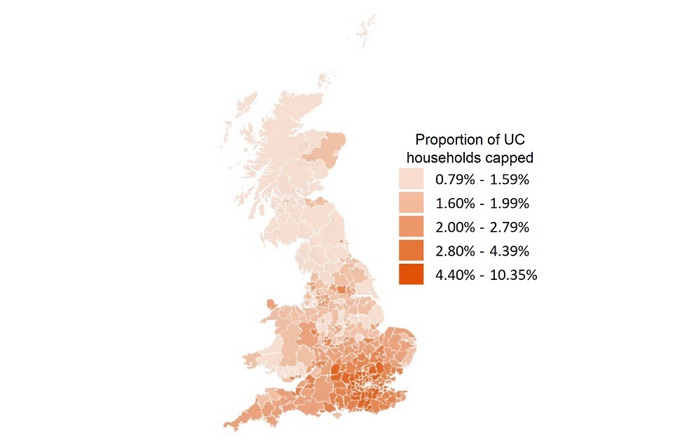 - The proportion of HB and UC claimants that have their benefit capped at the Local Authority (LA) level