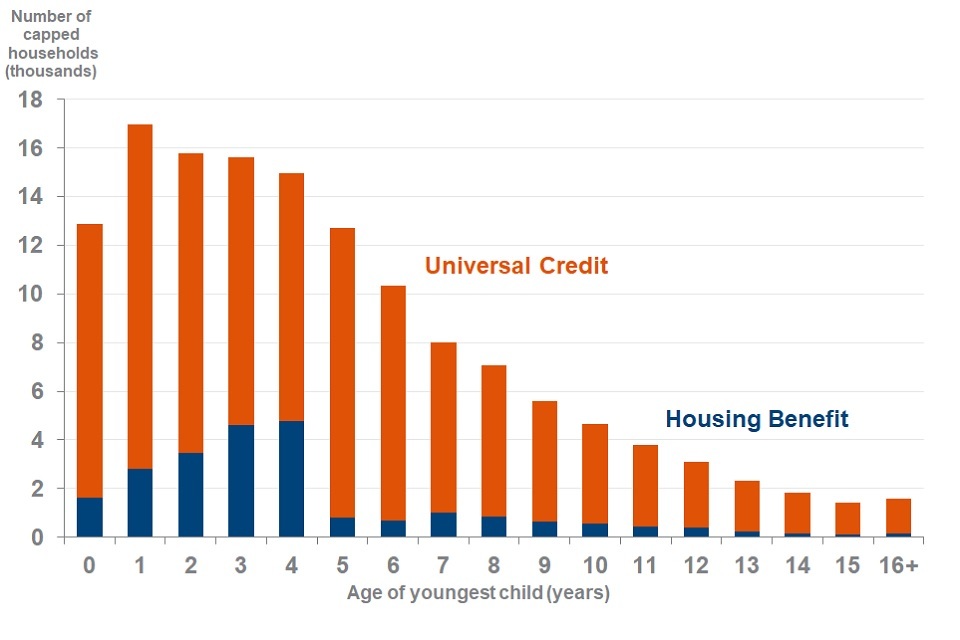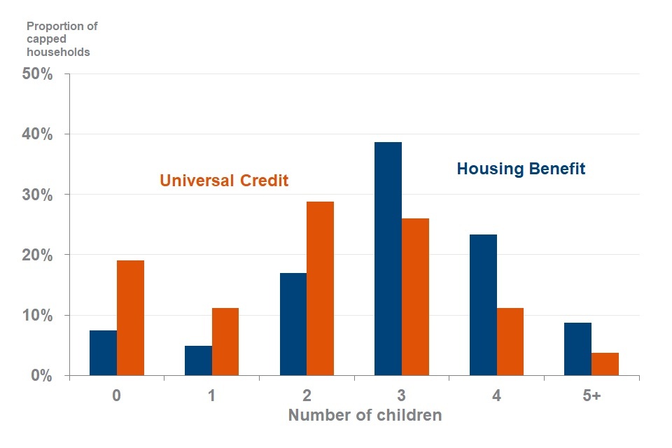 - The family make-up of capped households. From August 2019, this includes statistics on children in UC capped households
