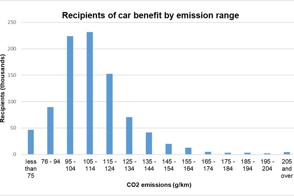 - Where an individual had company cars in different emission ranges during the year, the unit value in the recipients column is split between the emission ranges proportionately to the durations in possession of the different cars.