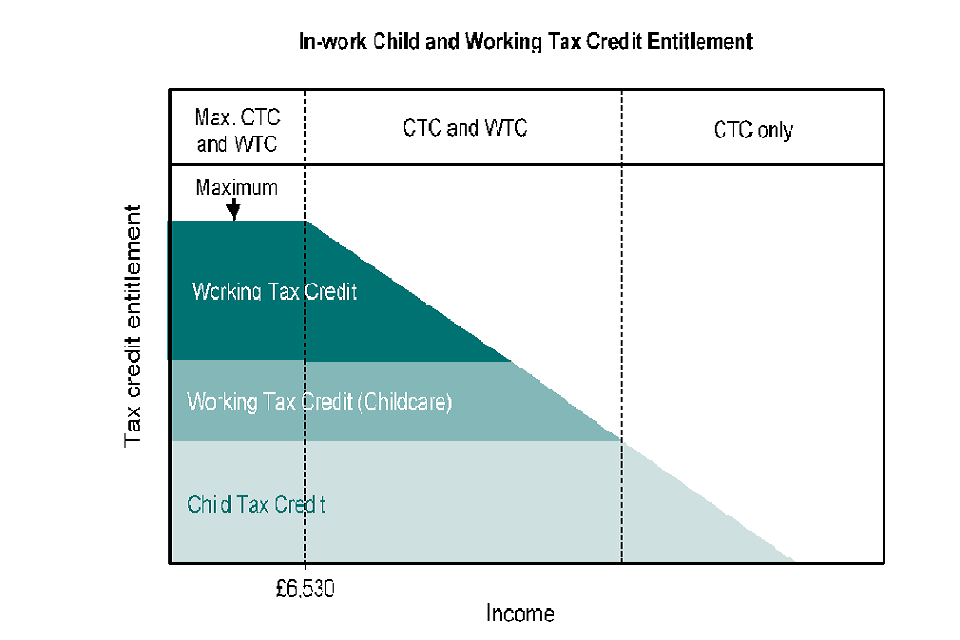 The amount of support an eligible family can receive (known as their entitlement) varies depending on their income and their eligibility for specific tax credit elements. First, a family’s maximum possible entitlement is worked out by adding up all the different elements of CTC and WTC that they are eligible for (described above).