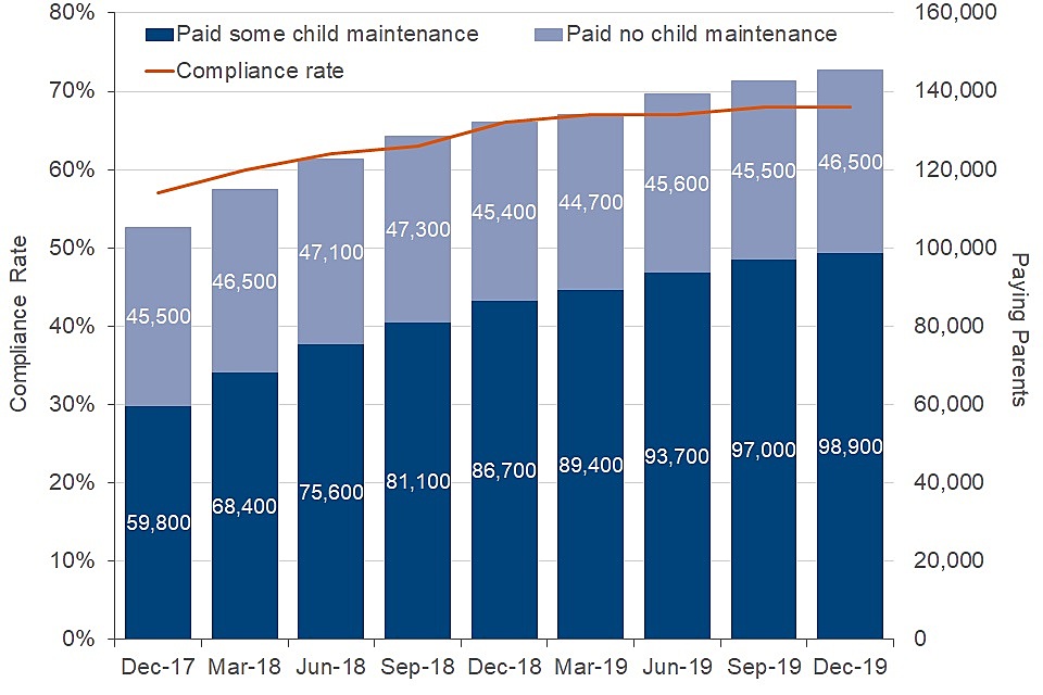 68% of parents due to pay child maintenance through the Collect and Pay service paid some maintenance in the quarter ending December 2019.