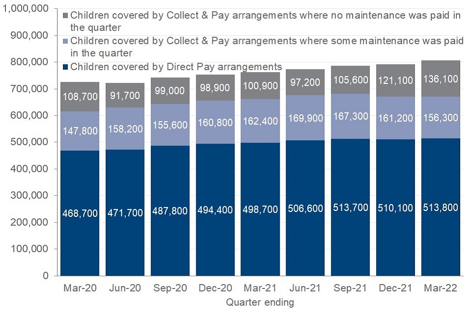 Children covered by Child Maintenance Service arrangements, March 2020 to March 2022