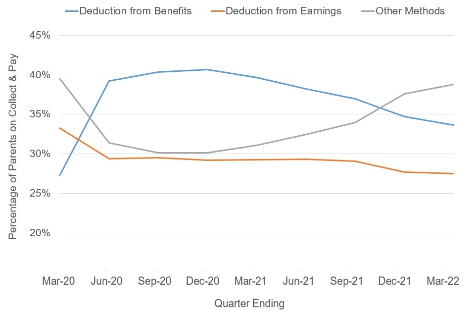 - individuals paying via Deduction from Benefits are more likely to contribute some maintenance, as deductions are made automatically. December 2019 was the last quarter entirely unaffected by the Covid-19 pandemic. The proportion of parents paying via Deduction from Benefits increased following the Covid-19 pandemic, which saw more movement of people onto benefits. Deduction from Benefit cases accounted for 25% of all Paying Parents due to pay via Collect & Pay in the quarter ending December 2019 and rose to 41% by the quarter ending December 2020