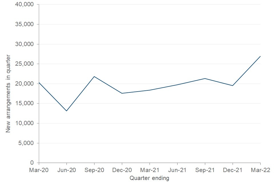 At the end of March 2022, the CMS was managing 588,700 arrangements for 544,600 Paying Parents. There has been an 7% increase to the number of arrangements since the end of March 2021.