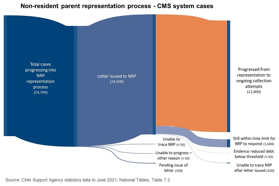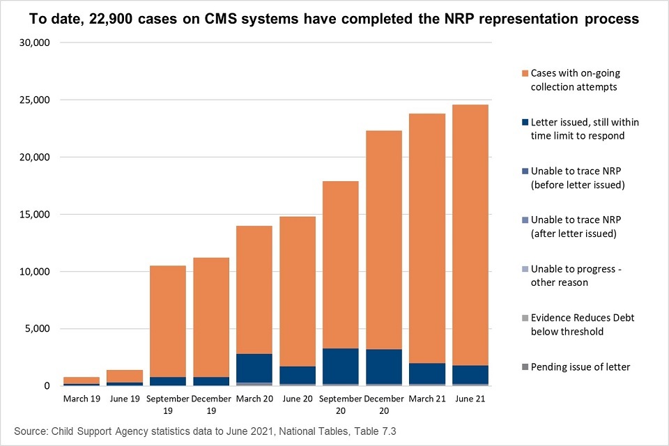 24,700 cases held on CMS systems and eligible for representation had started the non-resident parent representation process by the end of March 2021.