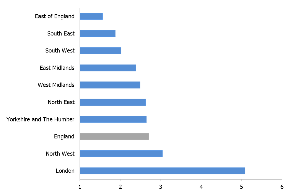 Across the regions, this gap ranged from 2 percentage points in the East of England to 5 percentage points in London (Figure 6).