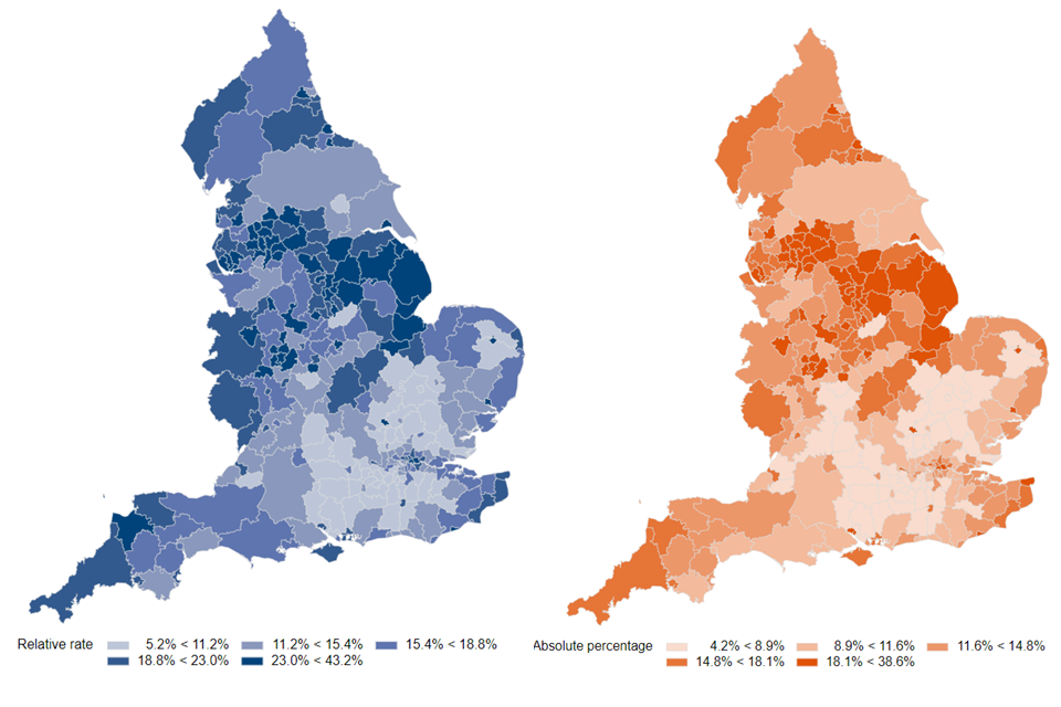 | Local Authority | Relative - proportion of children (%) | Absolute - proportion of children (%) |