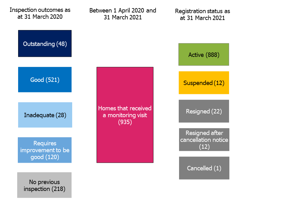 935 homes received a monitoring visit between 1 April 2020 and 31 March 2021.