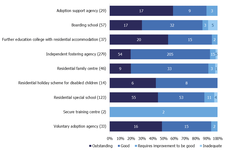 | Type of children’s home | Percentage outstanding | Percentage good | Percentage requires improvement to be good | Percentage inadequate |