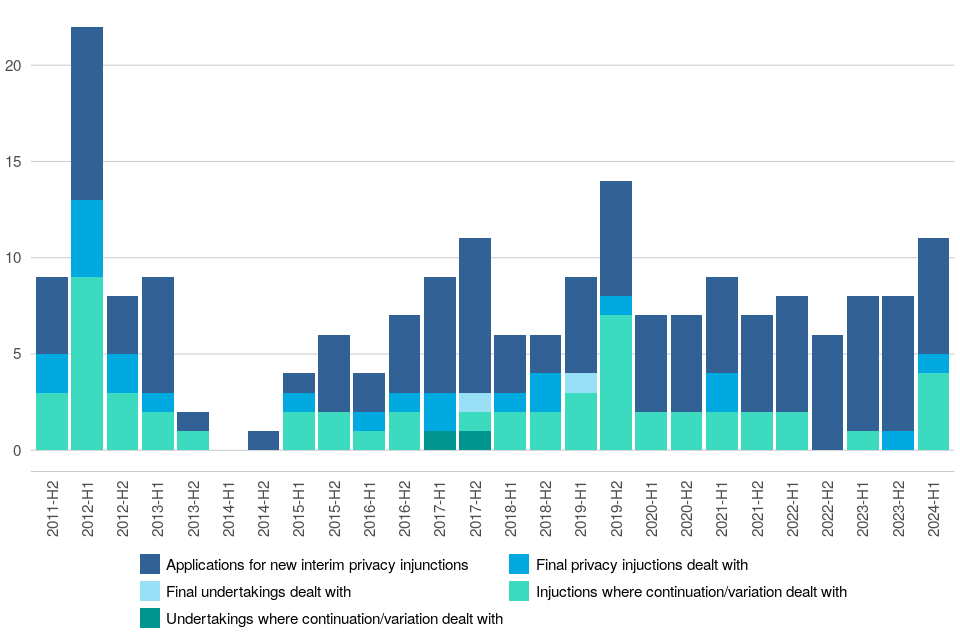 In the first six months of 2024, there were six proceedings where the High Court considered an application for a new interim privacy injunction.