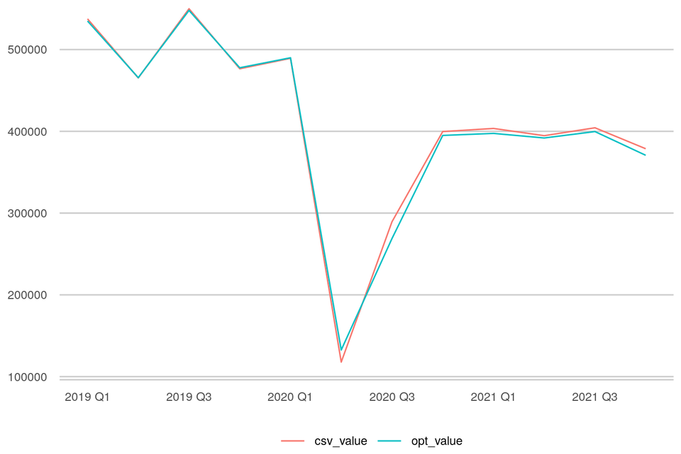 Data from the latest quarter is compared to OPT figures and data from previous years to find any unusual trends.